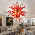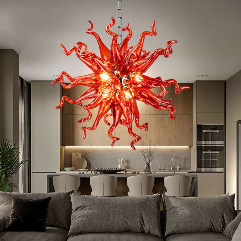 This Sputnik Pendant Light use red to highlight its vibrant tones. You can even feel the warmth of the flame through the light, install it in your room and you and your guests will be attracted by it. It has gained popularity in the market due to its artistic attributes and stunning appearance. Our customers have inspired us to continuously dedicate ourselves to designing lights that combine the Sputnik shape with blown curled glass. There are many sizes and models here, you can tell us the size and color, customize your unique chihuly style chandelier at Remshep.
